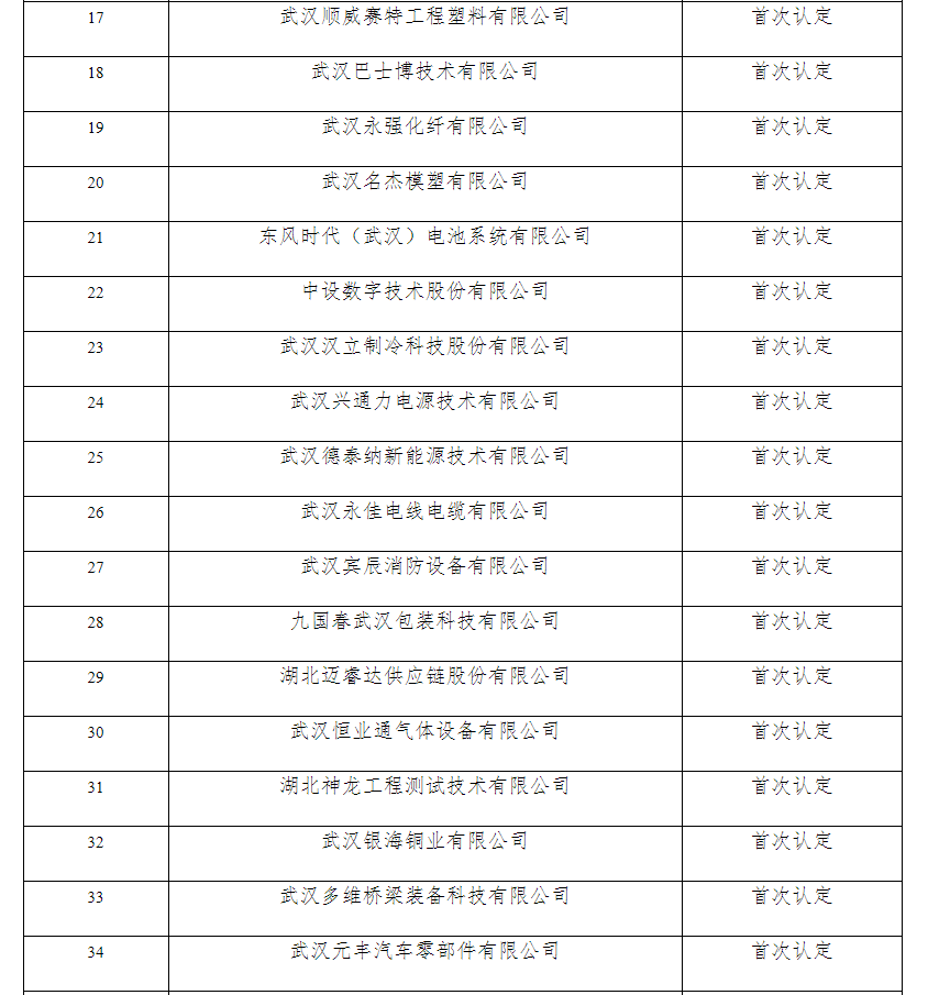 武汉经开区2021年度“瞪羚企业”拟认定名单