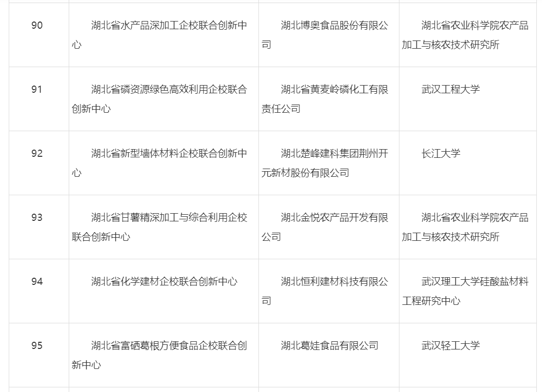 为贯彻落实《中共湖北省委、湖北省人民政府关于加强科技创新引领高质量发展的若干意见》(鄂发[2018]28号),进一步深化科技体制改革,鼓励全社会规上工业企业加大研发投入,积极建设研发机构,提升企业的创新活力,依据科技部《关于促进新型研发机构发展的指导意见》(国科发政[2019]313号)及《湖北省新型研发机构备案管理实施方案》中有关新型研发机构(D类),即湖北省企校联合创新中心的备案要求,经市州申请、专家评审、网上公示、异议处理、规范查重等程序,省科技厅同意 “湖北省先进混凝土制品企校联合创新中心”等331家备案为省级企校联合创新中心(见附件)。