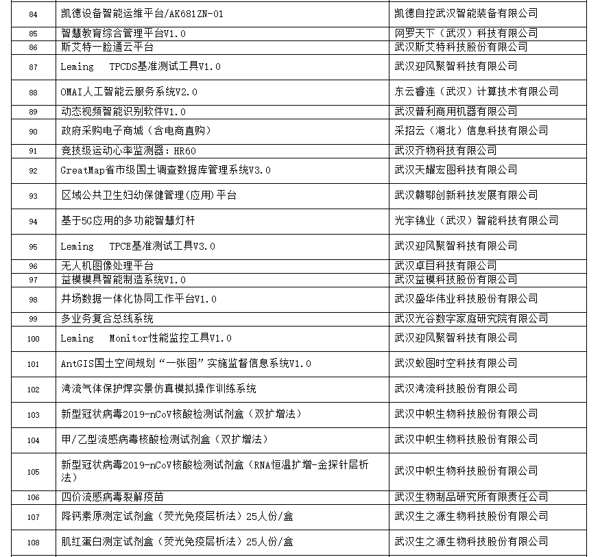 | 联系电话 | / | 关键词 | 武汉市创新产品 |