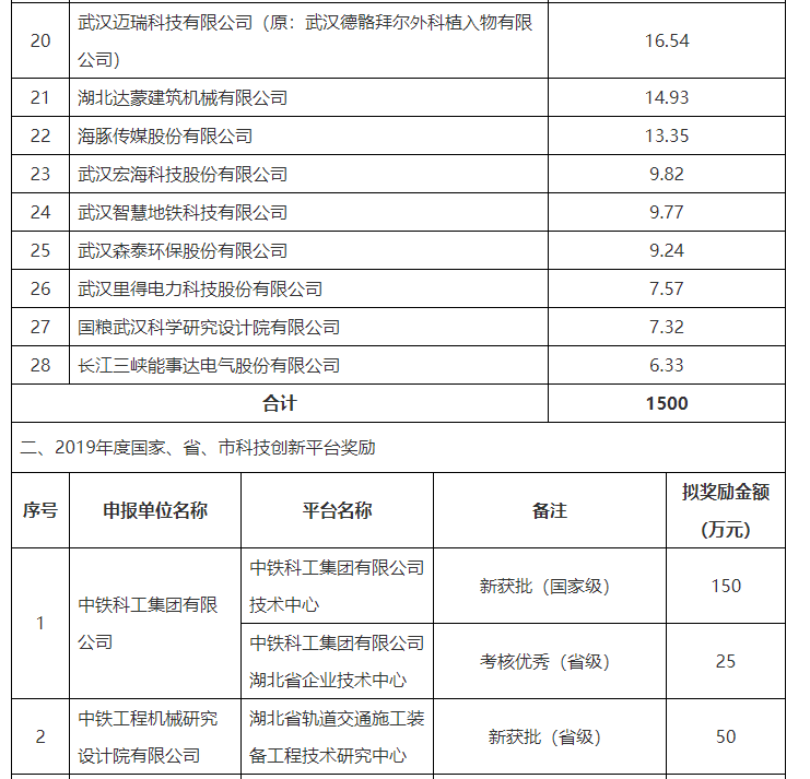 附件:洪山区2020年提升企业自主创新能力拟奖励(补贴)资金名单